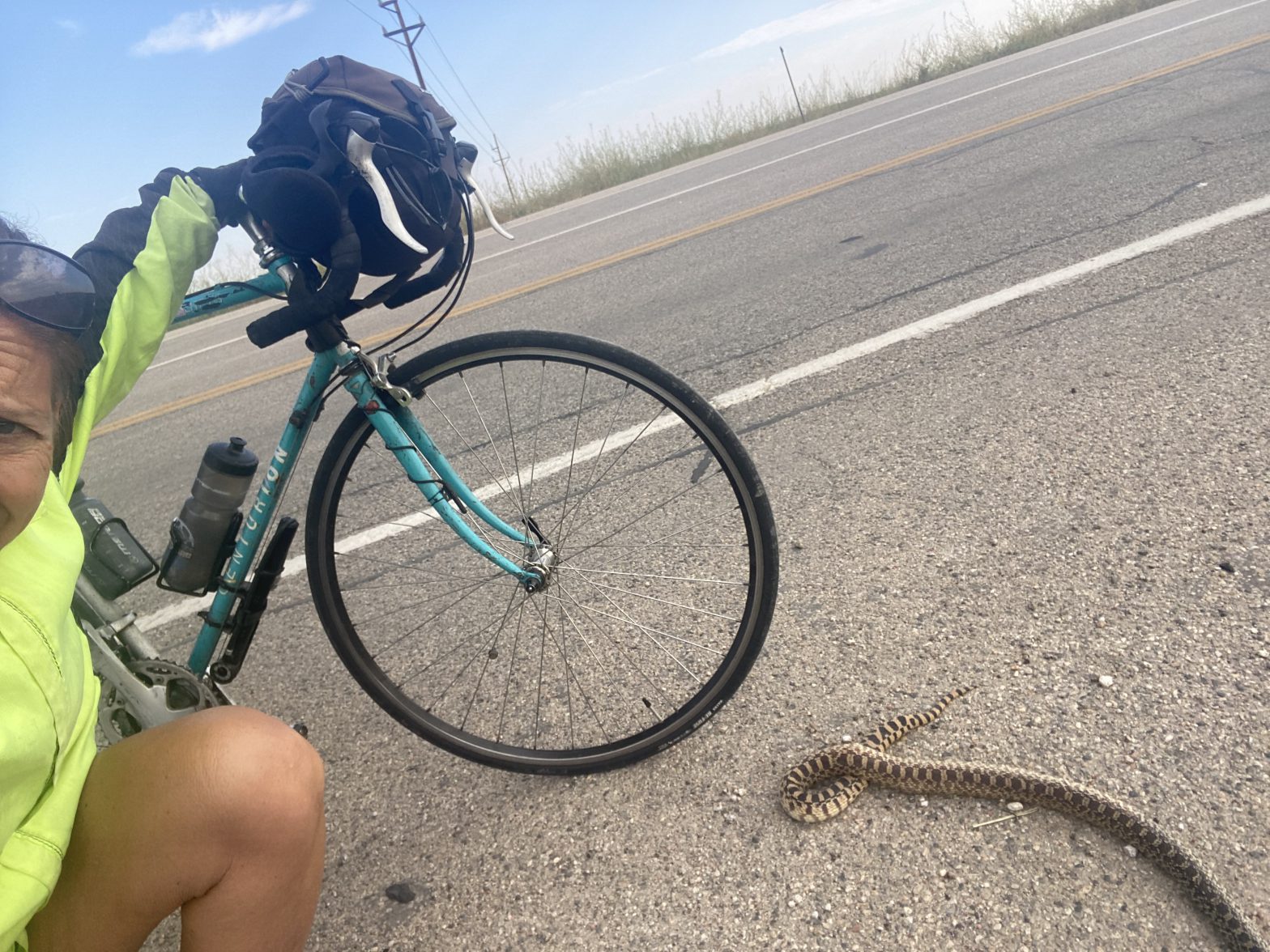 The day began perfectly, good weather, early start, only one snake… and after 17 miles on a desolate country road a sign pops up that reads “pavement ending.”
