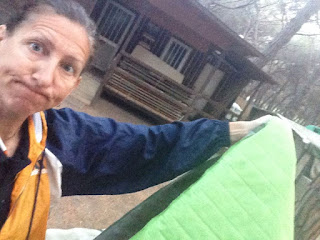 Here’s my cozy home-away-from-home for the night. You can hear the sea, and I’m awakening to a very energetic mourning dove and a bit of a puzzler….  It appears my air mattress has a hole. Somewhere.