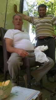 Constantine was his wing man. The pair offered me shade, a place to sit, and using a pocket knife, he sliced open a ripe melon. Constantine handed over a full liter bottle of drinking water. Antonio was bold and old. He asked my age, if I was married, and whether or not I had children.