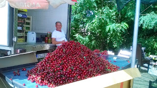 I was getting close to Milan, but it was late. It’s easier to stay in the small towns with welcoming churches and more affordable room rates. I took a random turn and ran into this fruit stand with a ridiculous pile of fresh cherries.