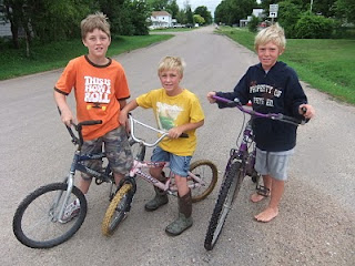– Got turned around a bit in Merna, Nebraska and stopped three kids on bikes. Reece, Blaine, and Cody were busy spending their summer pulling a plastic circle sled through the puddles around the gravel streets of Merna. “You go down that road and turn left and cross the railroad tracks and that’ll get you straight to Victoria Springs,” said Blaine… the youngest in the group. Blaine had blonde hair, a sturdy build and early confidence. I took a picture of the trio, gave them my card, and told them they could look for themselves on-line in a day or two. “I’m going to keep this in my pocket with my fishin’ worm, so then I’ll remember,” said Blaine. (I feel I’ve reached a new pinnacle in my career; my business card stored in an 8-year-old’s pocket next to his fishin’ worm.)