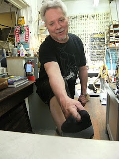 “My grandfather drilled all the safety deposit boxes in town and taught himself how to temper metal,” said Don, as he worked in the repair shop at the back of the building with a lathe to fix a shim on a seat post. Don was 58-years-old and had a simple salt-and-pepper taste in fashion. His short-cropped white hair, mustache, and goatee were set off by a black Diamondback t-shirt, black knee-length shorts, black bicycling socks and SixSixOne bicycling shoes.