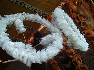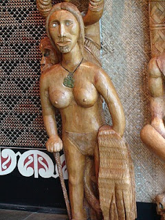 There were fabulous carvings and a life-size Tainui canoe complete with rings of white feathers.