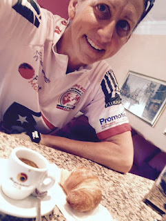 Italian breakfast at Hotel Rosy in Milan. Exploring my Italian breakfast options with a cream-filled croissant and a cafe. “American?,” asked my host, Francesca. No, I’ll be all things Italian the next three weeks.