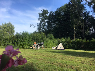 July 10, 2017 – Graft, North Holland – Setting up my tent in the front 40 to the sound of a peacock calling in the background. There are also sheep, the moo of the cow and some rustling behind me soon turns out to be a hen and her mates.