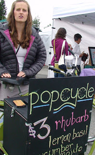 The corner market was also infused with a young entrepreneurial spirit. A twenty-something woman named Kate sold cucumber and rhubarb popsicles from a Franken bike which she said was designed by a friend. The lime-green three wheeler carried a small box cooler and a handmade sign that read ‘Popcycle.’