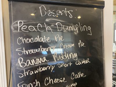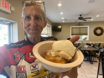 I could have had a peach dumpling chaser but instead treated my new friend Carolyn to a slice. She was 84 and playing solitaire on a tablet by herself at a table in the corner.