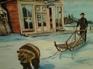 One of the better Alaskan gold-mining stories coincided with a painting of a man, Nathan White, and his pet brown bear he trained to pull his sleigh.