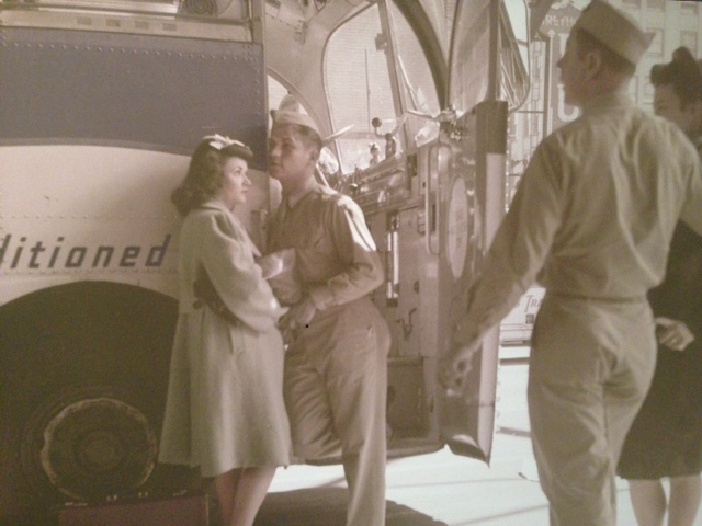 ABOVE: A soldier saying goodbye to his gal before getting on the Greyhound.