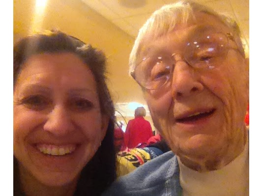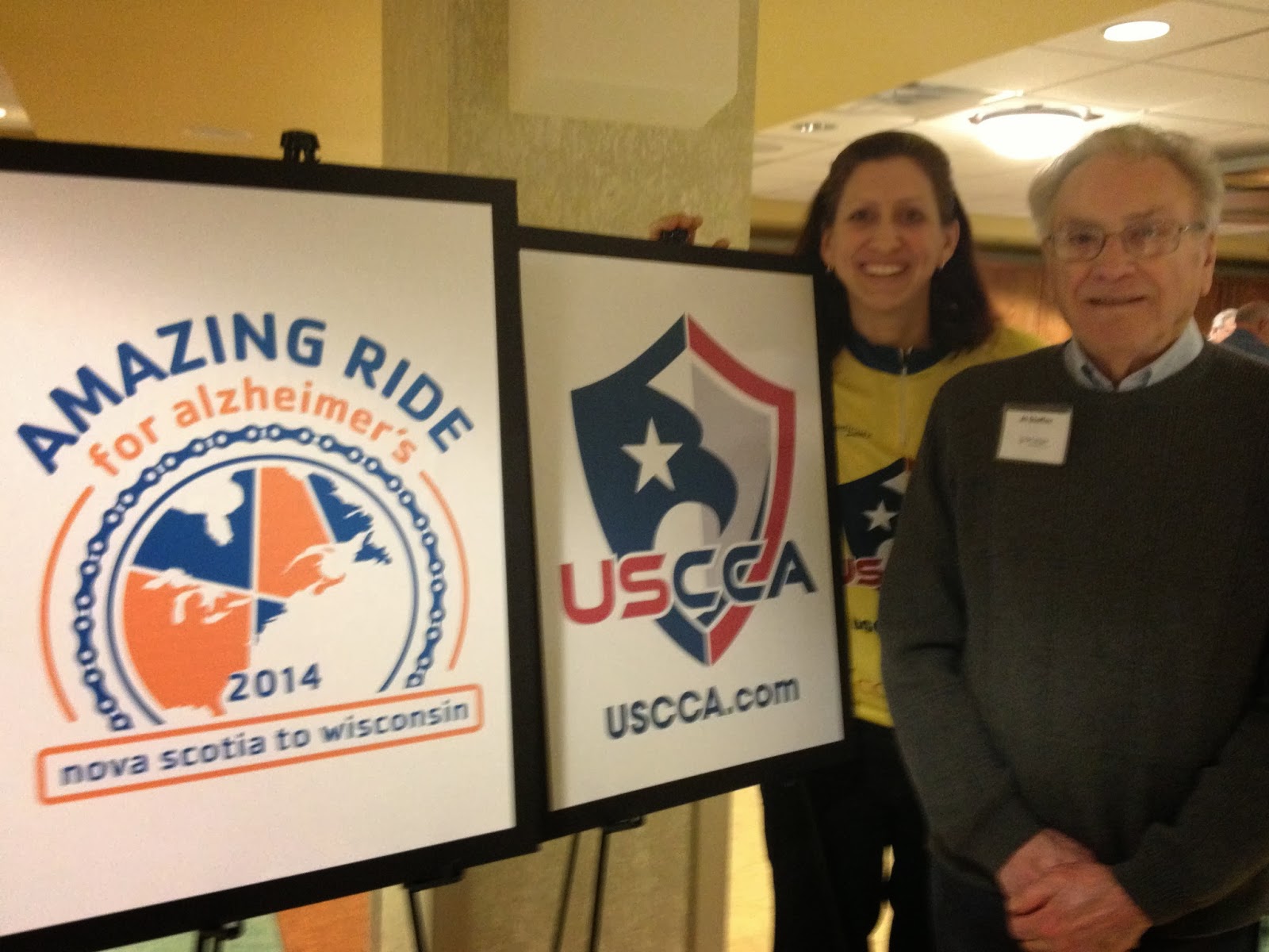 Me and my dad, Al Steffes, posing with the tour logo and primary sponsor for this year’s Amazing Ride for Alzheimer’s. Behind the scenes my mother is taking the picture with my iPhone. I told her to take several shots. After the first she stopped and looked at the camera. “How do I wind it forward?” Isn’t it fun when grandma learns newfangled stuff.