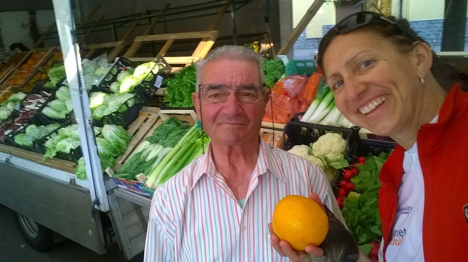 The man at the fruit stand hands me a huge orange in a plastic bag – a gift for breakfast . The nicest people here supplementing my vitamin C!