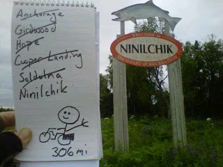 Ninilchick – Looking for a Resting Place for My Head 45 mi in so far. Made it to Ninilchik. Musta seen 100 moose tracks in the dirt along the side of the highway. Stopping for a break. Maybe the night; we’ll see if there’s a church hotel on the Chamber list.