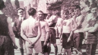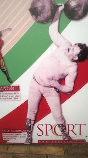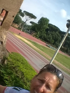Found this way cool track-and-field facility. The signs on the wall talk about the Olympics. The track has a red clay surface and the terraced stone stands would make for some uncomfortable seating. The field marshal is wagging her finger and saying “no no.”