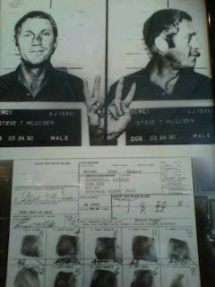 One of the best photos at the Alaskan State Trooper Museum in Anchorage; actor Steve McQueen arrested in 1972 for reckless driving. Love how he has a busted nose and is giving the peace sign in his mug shot….