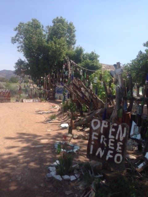 The colorful glass bottles are beautiful. The rest of the front yard is very Sanford & Son.