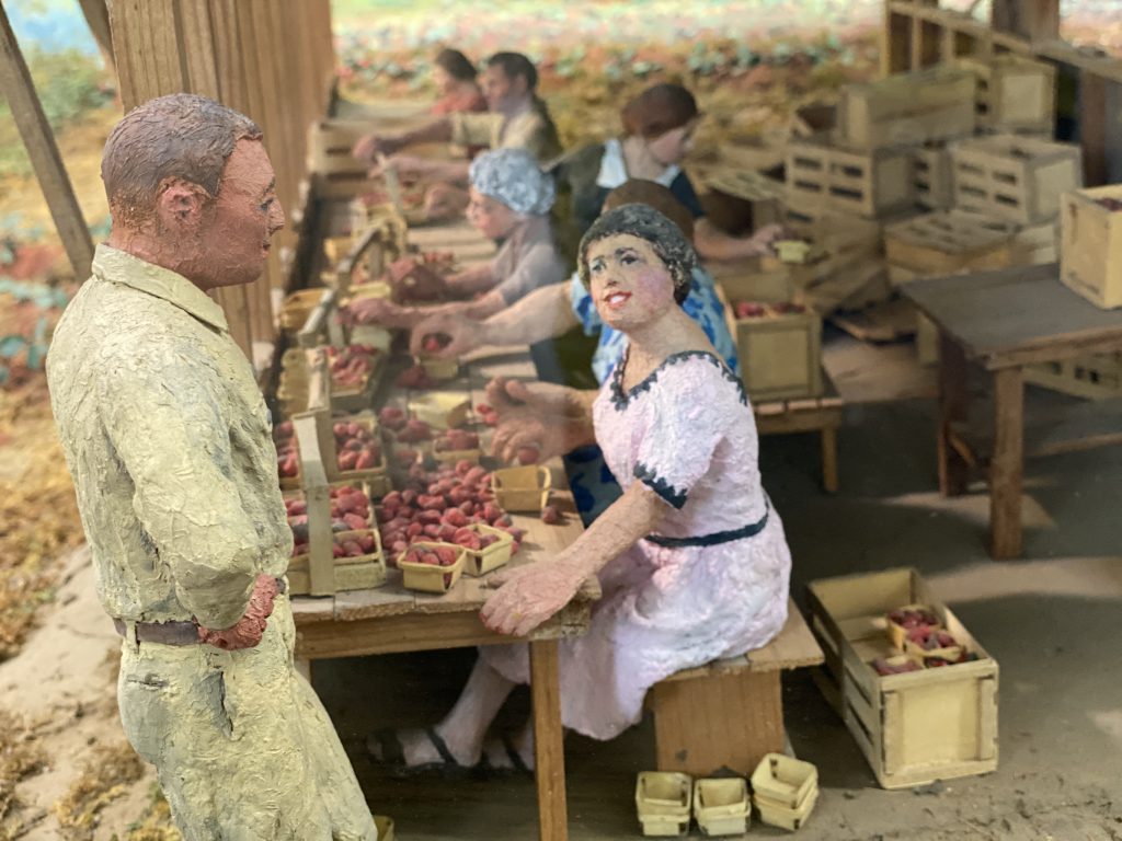 What’s really fascinating about the dioramas, aside from each showing the industry of the state which included agriculture, farming and mining − each figure was constructed out of beeswax.