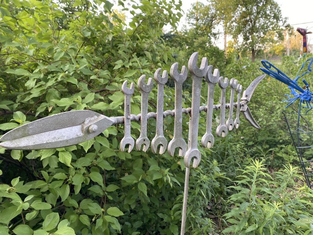 It’s the cleverness of creating a fish with wrenches and a bird with a hedge clipper for a nose.