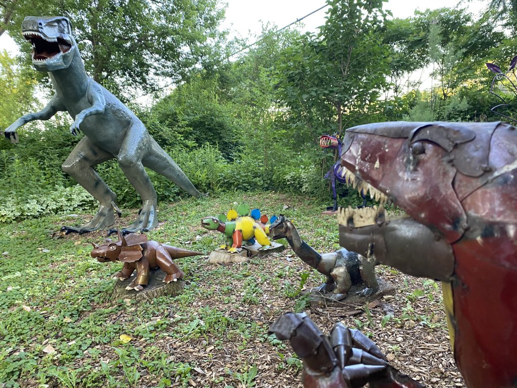 There’s a big dragon family and a barnyard with sheep and goats and chickens. Very entertaining roadside art.