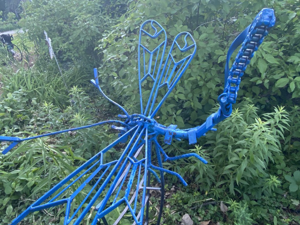 There’s a dragonfly and the tail is made of a number of links from a chain.