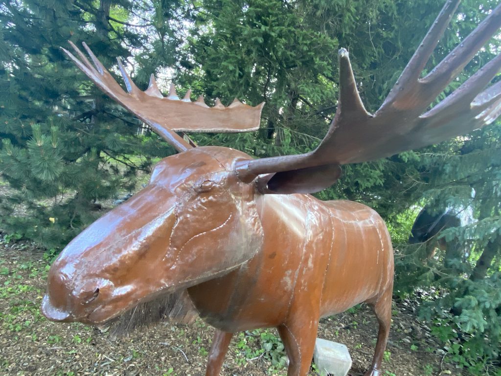 Gas tanks are used for the bodies of beetles and birds. Incredibly large animals include a stoic moose, roaring hippo, 10-foot tall giraffe, a majestic horse and a dinosaur that looks ready to battle Godzilla.
