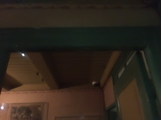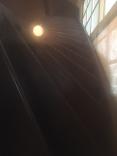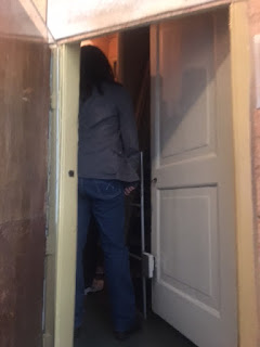 We climbed the stairs to the office and then the hiding space. Steep stairs. You had to duck your head and step up about six inches to climb behind the bookcase and through the secret passage.