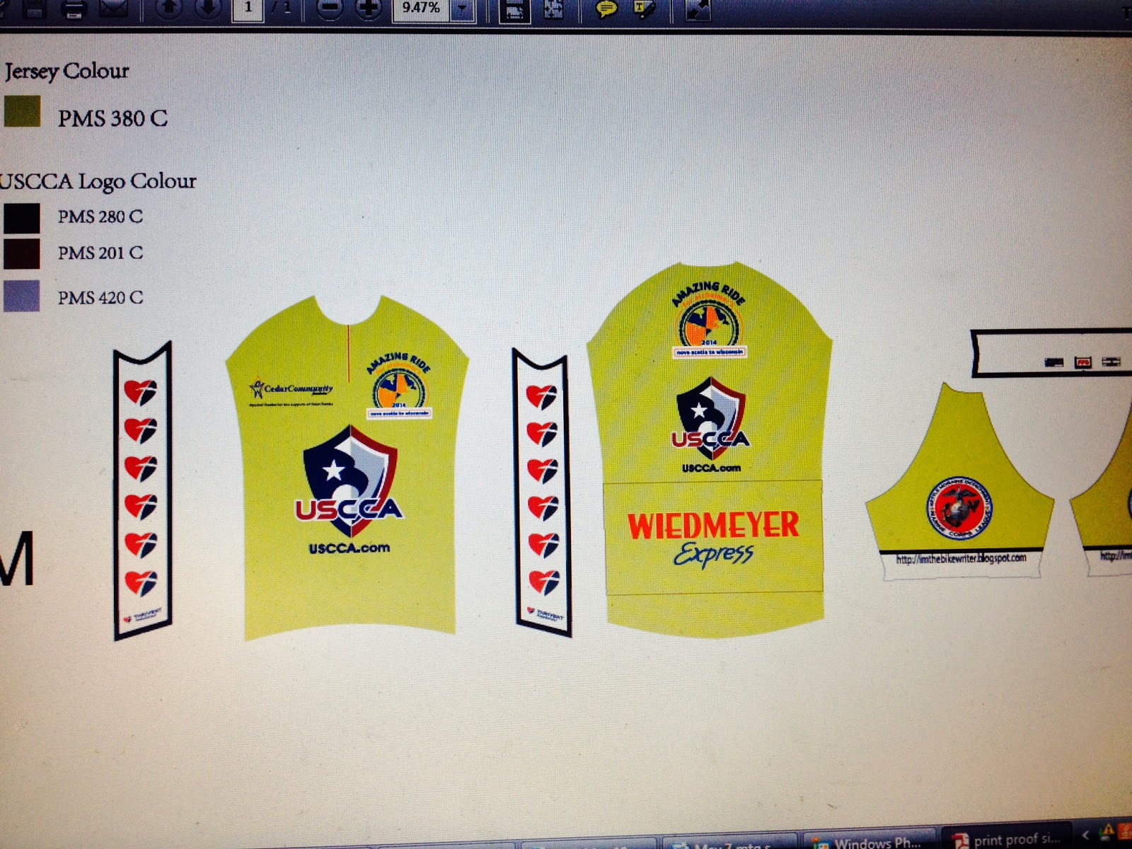 We’ve signed off on the final proof of the jersey and that’s gone to the printer – big thanks to Helyn at Husar’s House of Fine Diamonds that helped with the process.