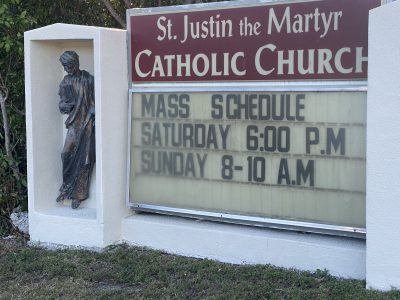 Crossing into Key Largo there was a very generic white on green sign. Turning out the majestic signs are on the side of the Chamber of Commerce building.