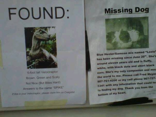 FOUND:  6-foot tall Velociraptor.
