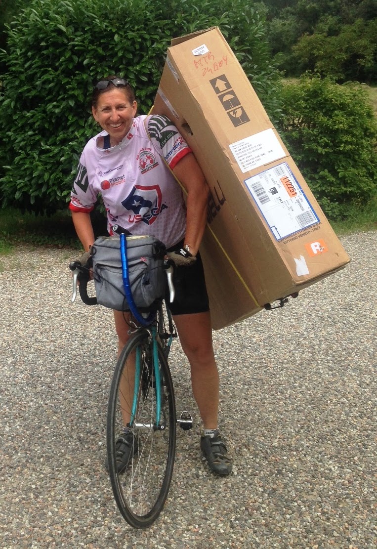 First, the box is a necessity to get the bike home. Research confirmed the airline would be of little help. Most stores in Italy are closed Monday, or they open after 2:30 p.m. Claudia said the store operators need a rest day. I decide to ask how they make money to stay in business. “This is why Americans are crazy,” she said, “You work yourself to death.”