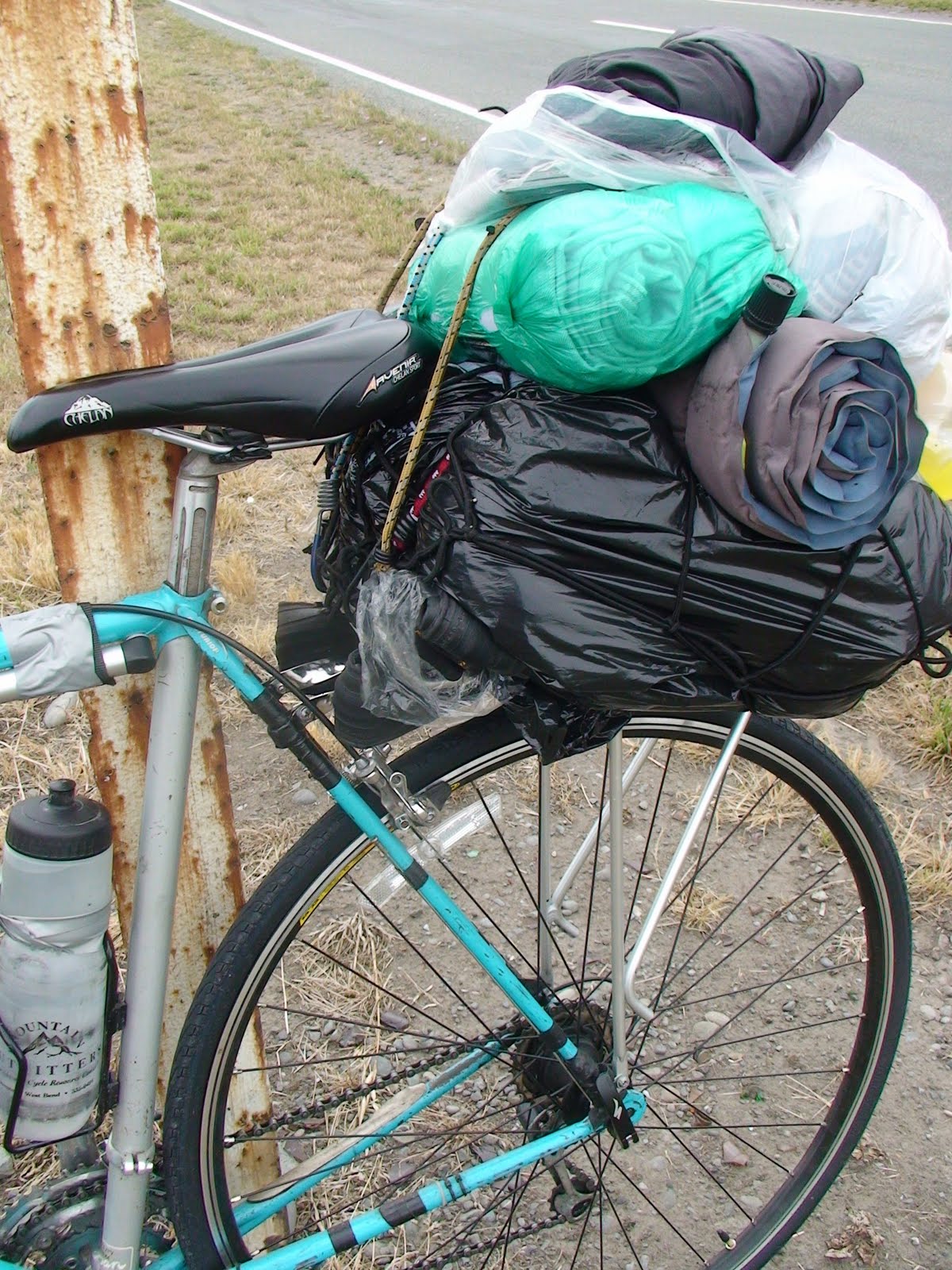 My rag-tag gear on the back of my bike;