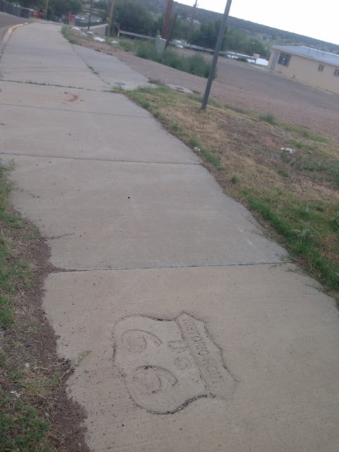 Route 66 stamped into concrete sidewalk
