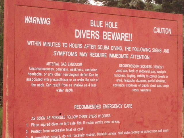 Just down the street from the church was a local tourist attraction called the Blue Hole. It’s a circular bell-shaped pool, about 130-feet deep and the water temperatures in the 60s. A lot of people use it as a local swimming hole and for scuba diving.