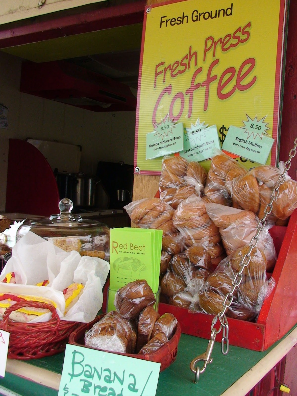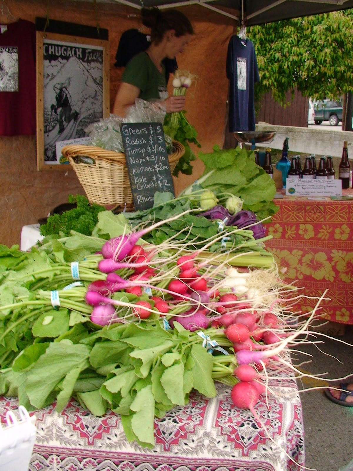 Up the road from Gwennie’s Restaurant in Anchorage, AK was a Saturday Farmers’ Market with a beautiful array of fresh vegetables, flowers, and honey.