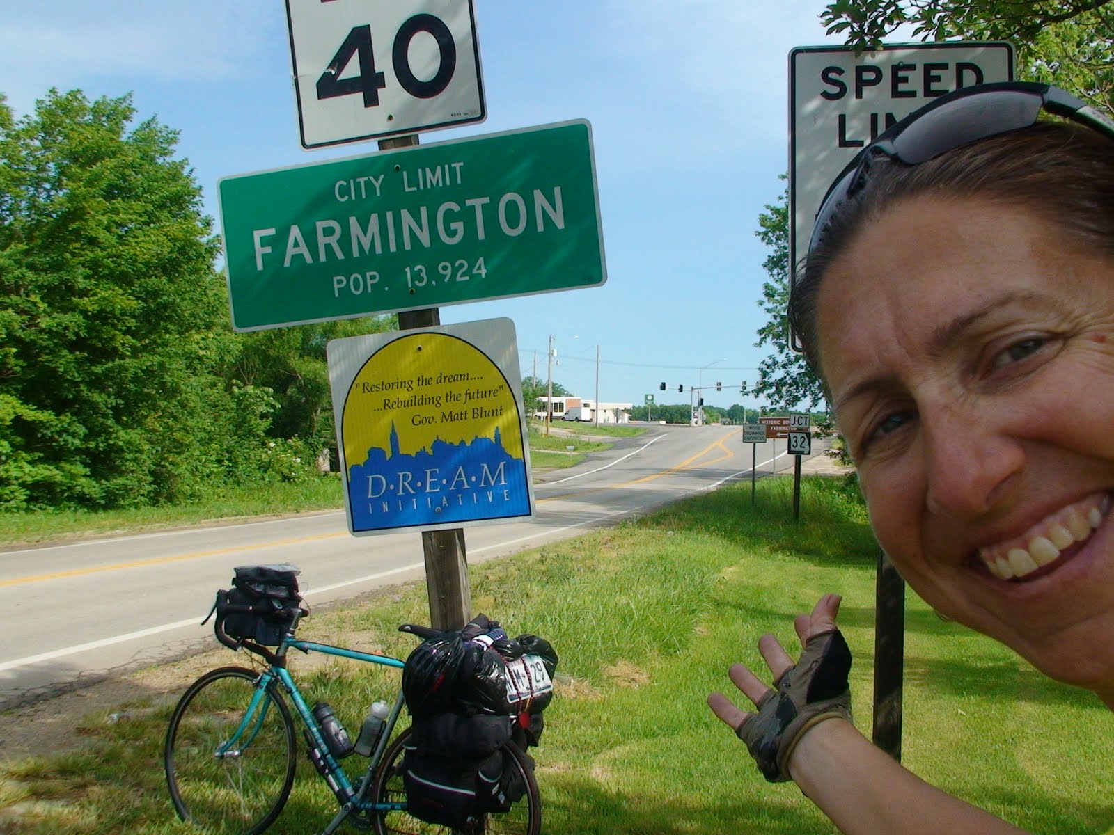 Entering Farmington, MO. Came into town on Hwy OO. Saved a HUGE snapping turtle; I didn’t know those things could jump. A lady stopped and we used her window scraper. The turtle latched on and it took me two elephant heaves to get it to the side of the road. Phew! If you need anything else rescued, just give me a call.