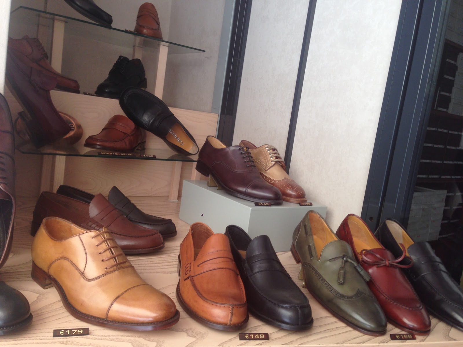 Anyway, Stefano was very friendly and gave me good directions – and he really cut a fine form in his suit. He also had those smooth blue shoes…. But I didn’t think how much I liked them until I started window shopping.