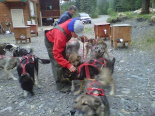 Upon our return, Bob helps untether the team and gives them food and water. Jayne quickly whips up breakfast which is when I learn she has her pilots license, has run a marathon, a triathlon, and run the Alaskan Seward Mountain Marathon eight times.