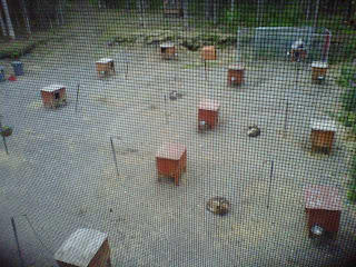 However, looking outside my bedroom window the lot in back was full of 13 dogs; huskies all chained to their individual raised sleeping quarters.