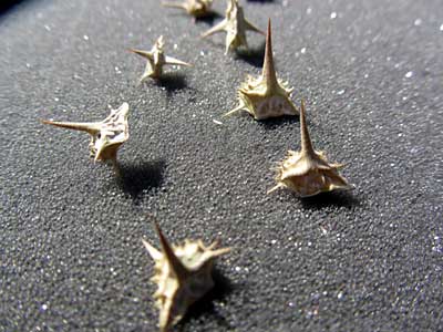 Goatheads are these fun little weeds that produce a nut-like thorn by the thousands. Ervin took out a small film container and poured some into the palm of his hand.