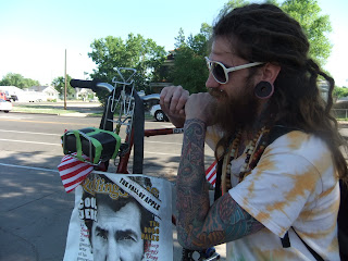 Headed out of Greeley around 8 a.m. during the July 4th weekend and caught up to Darin who was riding a tall bike.