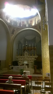 Stopping for 10:30 a.m. mass at S. Giovanni Battista just outside of Camogli. Very ornate church with ceilings that look like they’re painted in gold leaf.