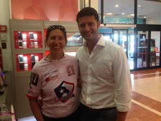 Internet Angel: Bought a SIM card to work in Italy. Didn’t work, so bought a new phone to make work. Now I have three phones and still no connection. Went to return phone and ran into this Internet Angel. Raimondo spoke perfect English. He followed me to two stores until I got it fixed. I asked a lady if she could take a photo of me with my new boyfriend. She did. That woman was his real girlfriend. smile emoticon