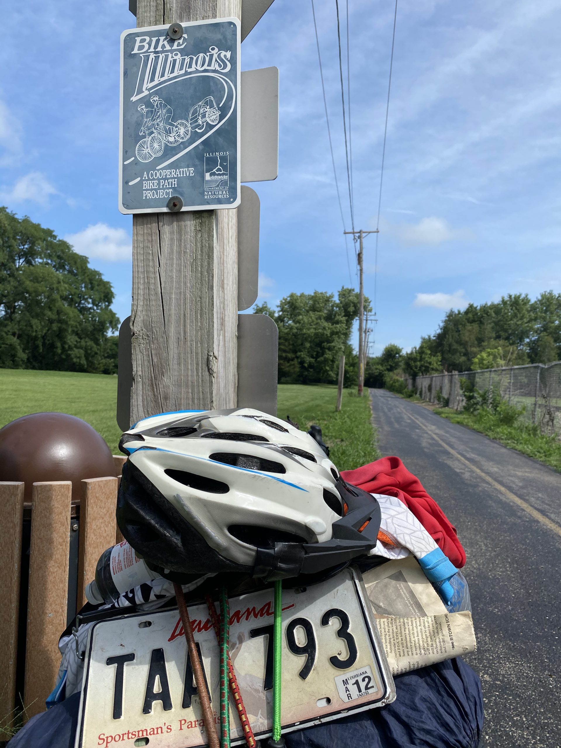 August 13, 2021 – Richmond, IL – Pedaled from 7:15 a.m. to 7 p.m., covered 91.89 miles. I’m sore, I can’t touch my toes and I’m still in bear country.