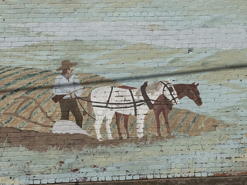 An aspect of the mural is the transition of color through the piece. It was intentional to use black-and-white as the most recent history, then to sepia tones in the addition of more color for further back in time.