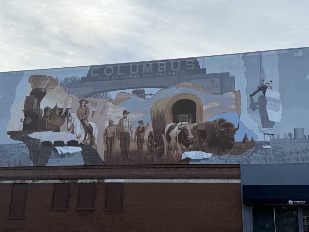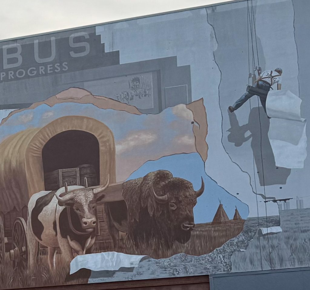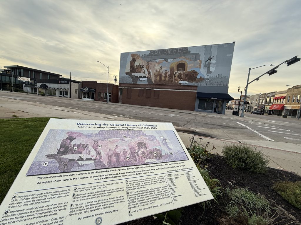 Columbus, NE in particular had an awesome painting in its downtown at 26th Street and 13th Avenue. It was titled Discovering the colorful history of Columbus; commemorating Columbus‘s sesquicentennial 1856 to 2006 by artist designer, David Reiser.