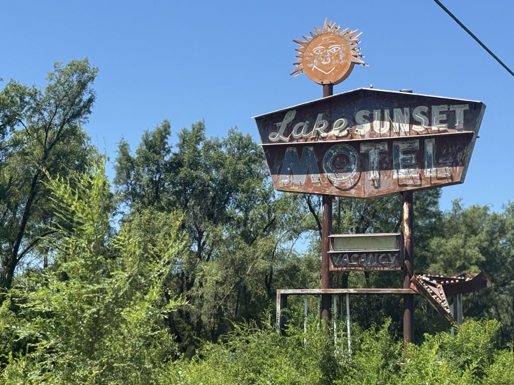 In Overton, NE I needed a break from the sun. I walked into a Pump n’ Pantry and the kid behind the counter said, “I don’t know if you’re gardening or looking at gemstones.” I assumed he was looking at my tattered bicycling gloves and perplexed by my rearview mirror on my glasses.