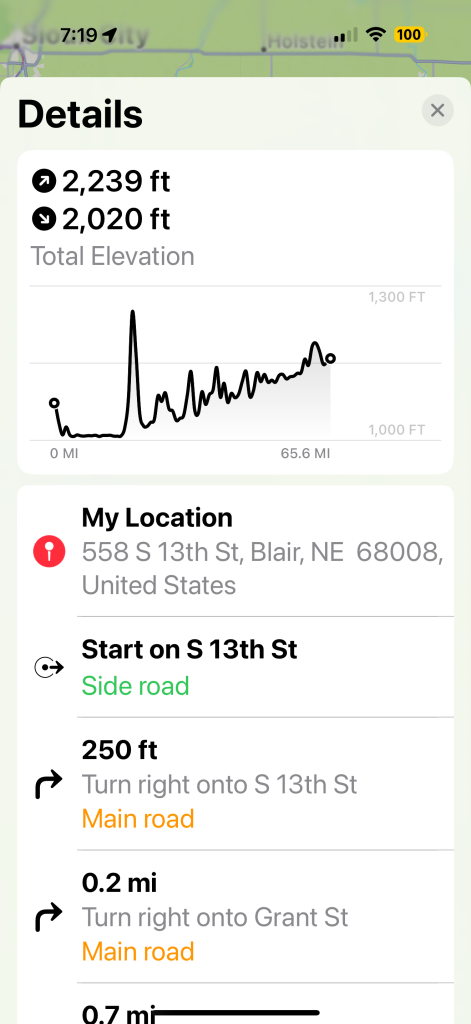 This was my map yesterday as I hit the road to finally pass from Nebraska into Iowa. A farmer looked at the image and said, “Is that the hills or your heartbeat?” I said both.