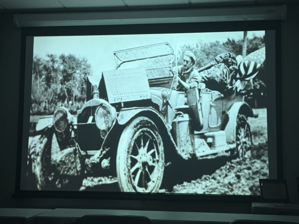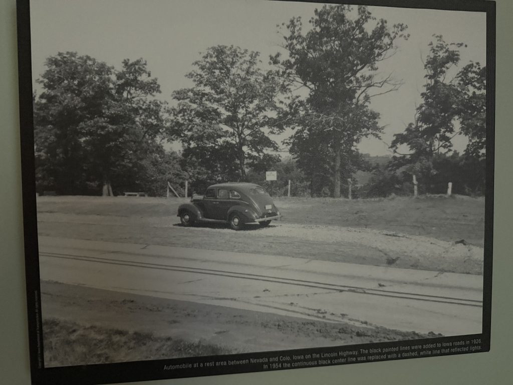Kim, the attendant, started a black-and-white history video on the Lincoln Highway. Pretty remarkable. Henry Ford, who was getting rich with his automobiles and the assembly-line process, refused to chip in even though a cross country paved road would have done wonders for sales.