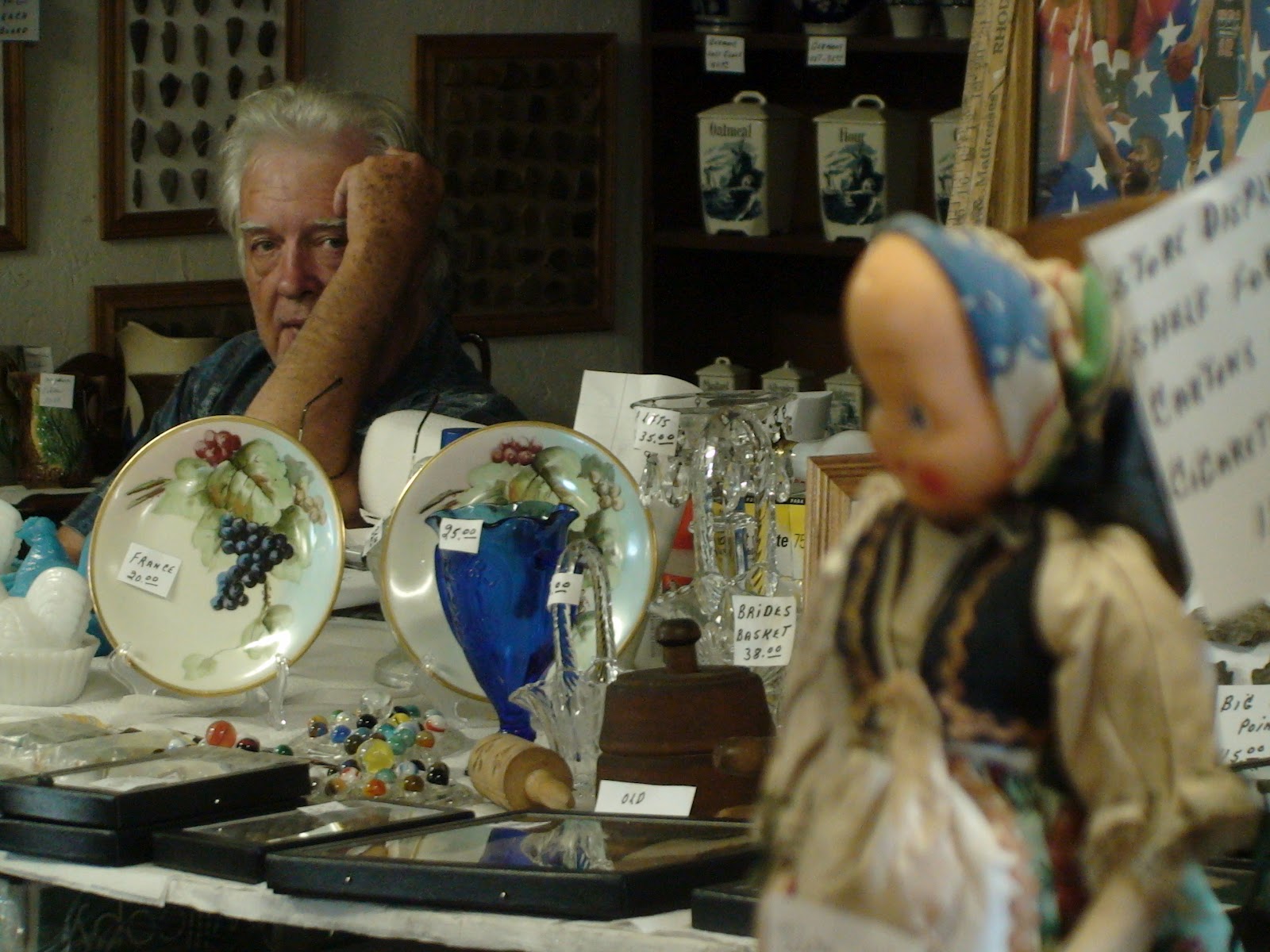 Jesse had been there since the 1980s. He said his selection of antiques changed often and he only displayed the best. He had an old pitchfork made from a tree branch; the tines on the farm implement were sanded and polished to a fine point. “Take a look there at that shovel,” he said pointing to a completely wooden handmade shovel.