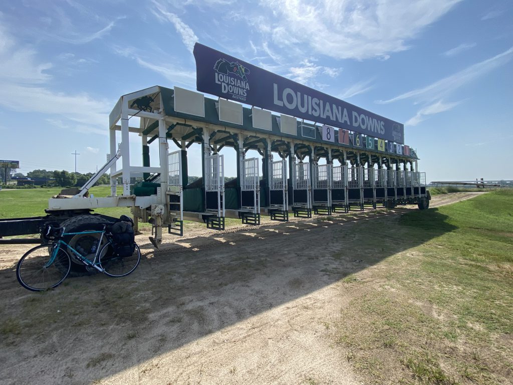 July 28, 2021 – Bossier City, LA – Left Shreveport about 9 a.m., and within about 10 miles I was standing in front of Harrah’s Louisiana Downs. The entrance was open so I drifted in.