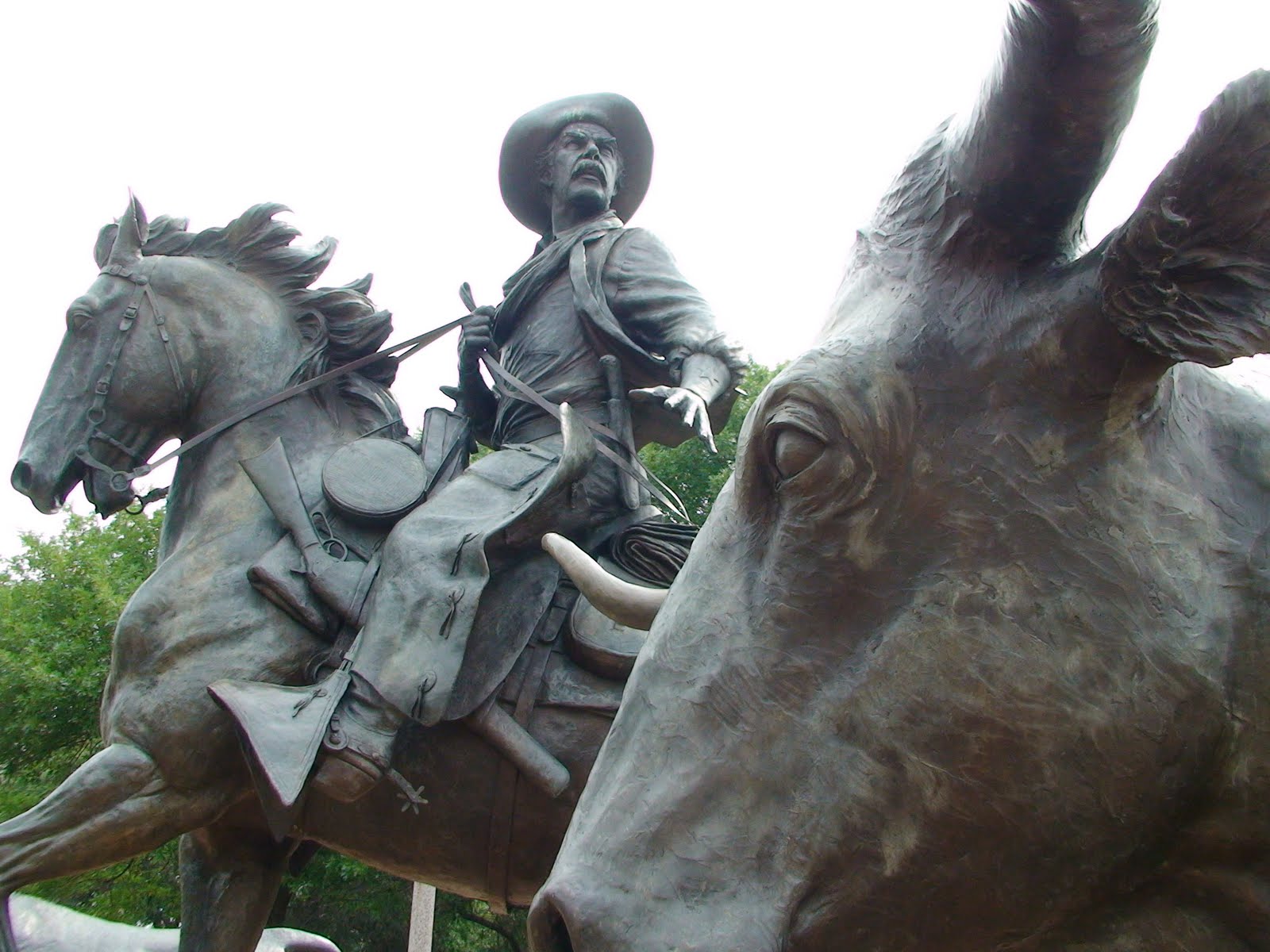 Cowboy and horses outside the Chisholm Trail in Waco, Texas.